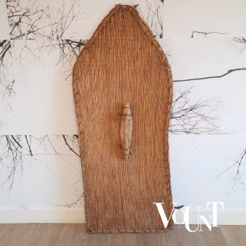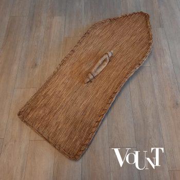 Deze kruk is afkomstig uit Ghana en is verbonden met de Asante/Ashanti-cultuur. Oorspronkelijk werd de kruk speciaal voor de eigenaar gemaakt en mocht deze ook door niemand anders worden gebruikt. Hierdoor bestaat er een grote variëteit aan vormgeving van deze krukken. Ze worden uit één stuk hout gemaakt. Dit lichtbruine exemplaar is een Mma’ gwa of vrouwenkruk. Deze wordt gekenmerkt door 5 steunen onder het zitvlak, waarvan de middelste een opengewerkt motief heeft. De andere steunen hebben een zaagtandmotief. Gebruiks-/ouderdomssporen. Mooi patina. Gewicht: 6,8 kg.