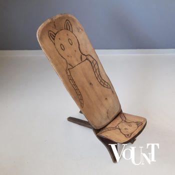 Deze mooie oude Afrikaanse kruk met houtsnijwerk uit Kameroen bestaat uit 1 stuk hout. Komt voort uit de Bamoun-cultuur. 1e helft 20e eeuw.