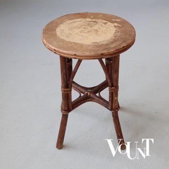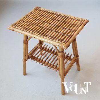 Deze jaren ’50 rotantafel van Rohé Noordwolde met glasplaat van “wolkjesglas” is in goede staat en heeft de voor deze leeftijd normale gebruikssporen, maar geen beschadigingen. Deze heeft een leggedeelte voor tijdschriften en metalen poten.