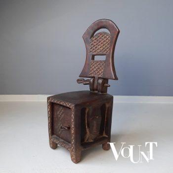 Mancala is een heel oud bordspel, waarop veel variaties bestaan, en dat (naast in Azië en Noord- en Zuid-Amerika) in veel Afrikaanse landen wordt gespeeld. We kunnen dan ook niet met zekerheid zeggen uit welk Afrikaans land dit exemplaar komt. Mogelijk Ivoorkust of Mali. Dit bord in de vorm van een krokodil is uit één stuk hout gesneden. In goede conditie. Datering ca. jaren ’60, maar kan ook ouder zijn.