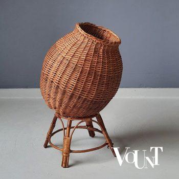 Bij deze spiegel met geweven rotan rand is sprake van weer (foxing) in het spiegelglas in de vorm van bruine vlekjes. Rotan in goede conditie.