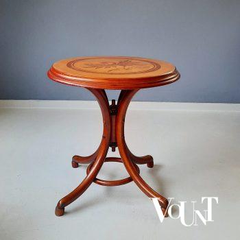Dit art nouveau kastje is gemaakt van eikenhout en heeft sierlijke zwarte poten en zwarte houten knoppen op de deurtjes. Sober model. In goede conditie.