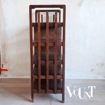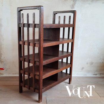 Dit eikenhouten roffeldeurkastje uit de jaren ’50 is heel degelijk gemaakt en nog steeds in goede staat. Van binnen is het kastje voorzien van twee legplanken die in hoogte gevarieerd kunnen worden. Zo zou je onderin of bovenin ook nog ordners kunnen plaatsen. Het kastje is afsluitbaar door middel van een (aanwezige) sleutel.