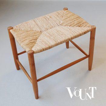 Rechthoekige houten kruk met biezen zitting, jaren ’70