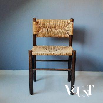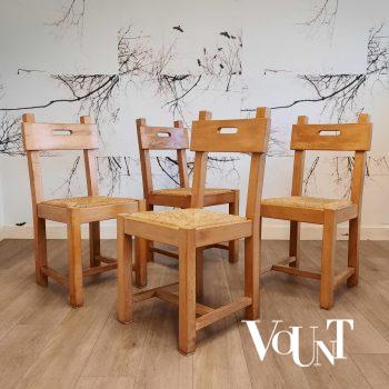 Set van 4 of 6 brutalist stoelen met biezen zitting, jaren ’70
