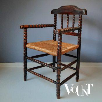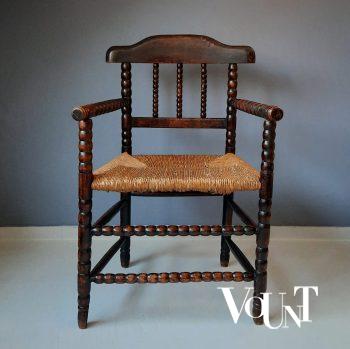 Antieke knobbelstoel of bobbin chair met biezen zitting, ca. 1900