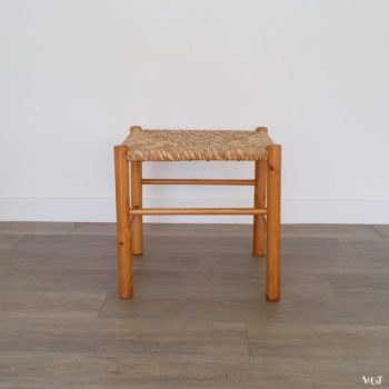 Grenen kruk met biezen zitting, jaren ’60/’70