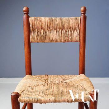 Set van 4 brutalist stoelen hout met biezen, jaren ’70