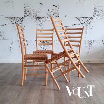 Set van 4 Italiaanse stoeltjes met biezen zittingen