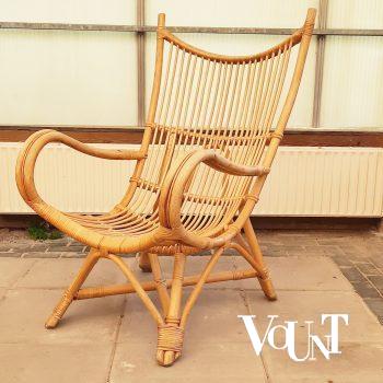 Grote rotan fauteuil met hoge rug, jaren ’80