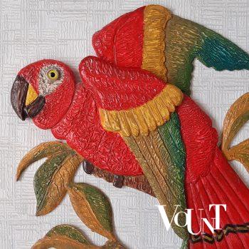 3 Dimensionale wanddecoratie papegaai, jaren 50