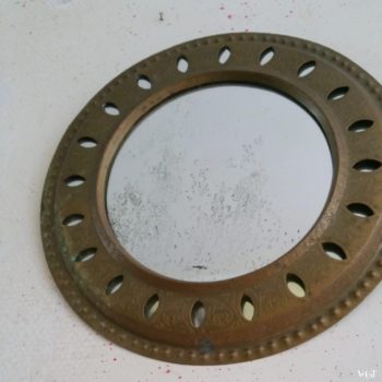 Bewerkte ronde geel koperen spiegel, jaren ’50/’60