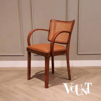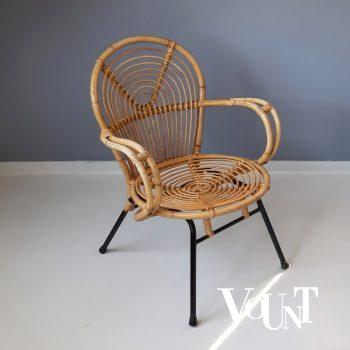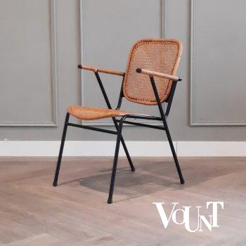 Jaren ’50 stoel zwart metaal en gevlochten rotan