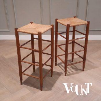 Set van 2 houten barkrukken met biezen zitting, jaren ’60