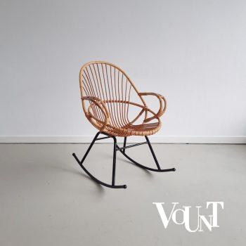 Rotan schommelstoel met metalen frame, Rohé Noordwolde, jaren ’60