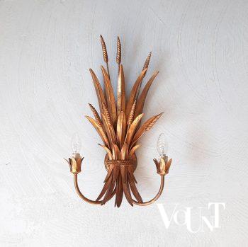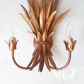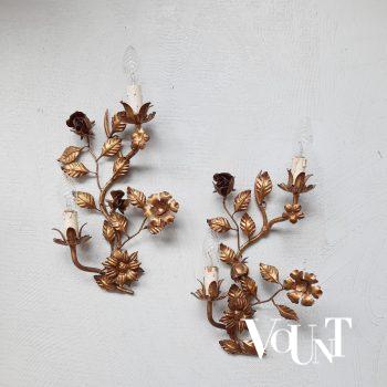 Set van 2 goudkleurige wandlampjes bladeren en bloemen, jaren ’50/’60