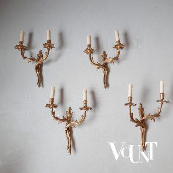 Set van 4 messing wandlampen, Frankrijk, jaren ’50/’60