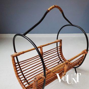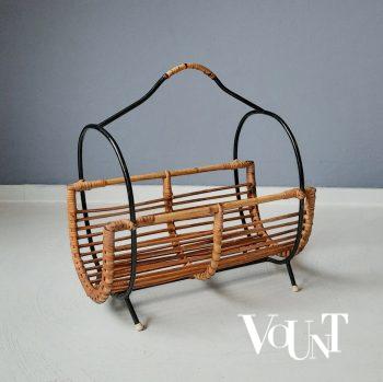 Rotan lectuurrek met zwart metalen frame, jaren ’60