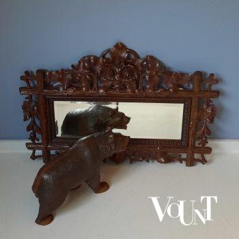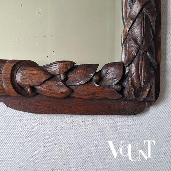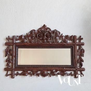 Antieke houten handgesneden wandspiegel, eind 19e eeuw