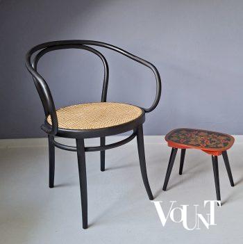 Handbeschilderd Kokhloma bijzettafeltje / krukje, USSR, jaren ’70