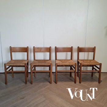 Set van 4 stoelen met biezen zitting, Johan van Heuvel voor Ad Vorm, jaren ’50/’60