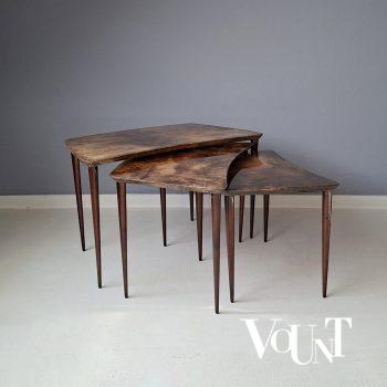 Oorspronkelijk zal dit krukje voorzien zijn geweest van canvasbekleding. Het heeft nu een zitting van dik oud leer. Gemerkt op een van de poten. Begin 20e eeuw geproduceerd door de Belgische firma “Torck” (1887 – 1971).