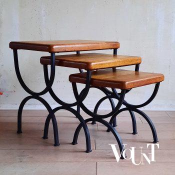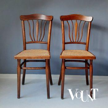 Dit art nouveau kastje is gemaakt van eikenhout en heeft sierlijke zwarte poten en zwarte houten knoppen op de deurtjes. Sober model. In goede conditie.