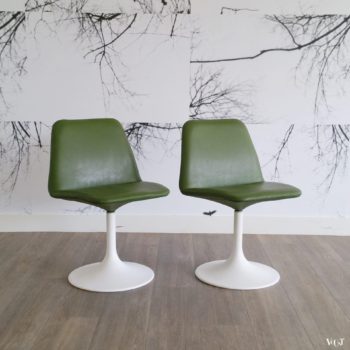 De Nederlandse ontwerper Rudolf Wolf (1919-1989) ontwierp begin jaren ’60 deze Beta stoel voor de firma Van Gaasbeek-Van Tiel voor de Meanderserie. De stoel bestaat uit een roestvaststalen frame en zwarte leren bekleding. Dit is een vintage-exemplaar. (De stoel wordt nog steeds geproduceerd). Het leer van de stoel heeft geleefd en daardoor een mooi patina gekregen. Op de armleuningen zitten wat kleine gaatjes.