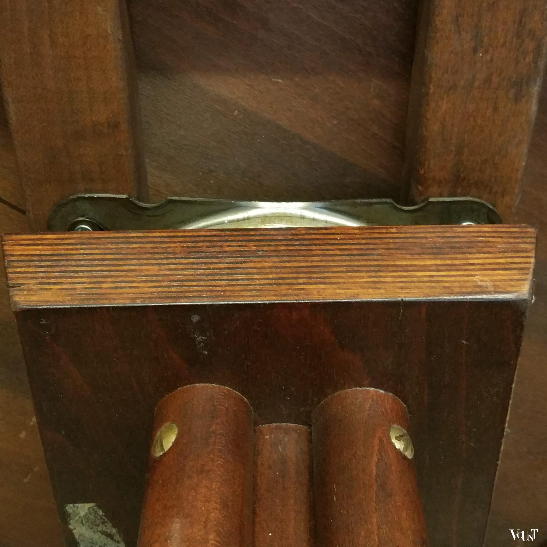 Afmetingen: hoog 77 cm, breed 54 cm, diep 57 cm, zithoogte 47 cm, hoogte midden armleuning 69 cm.