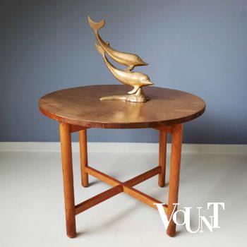 Egyptisch handgemaakt houten klaptafeltje. Wordt ook wel als Marokkaans tafeltje omschreven. Zwart houten frame. Blad ingelegd met stukjes parelmoer. Bijzonder decoratief. In goede conditie.