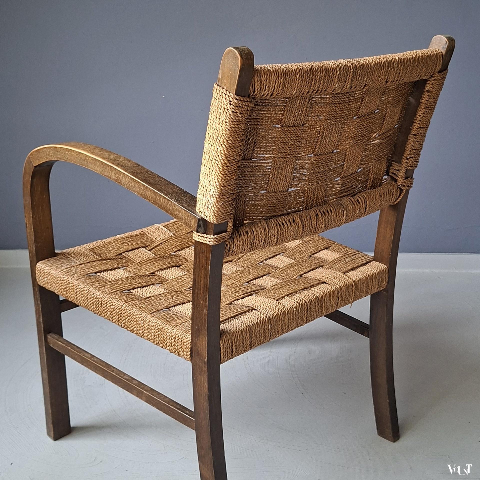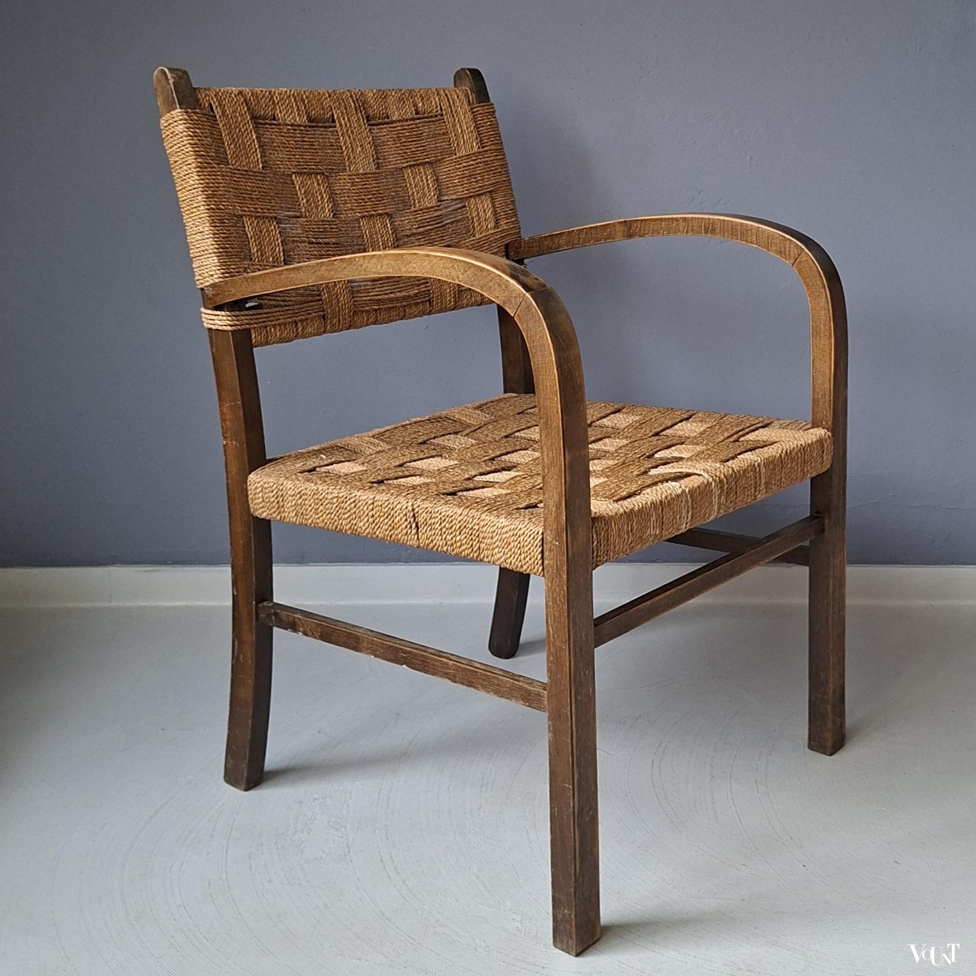 Zie ook op onze site: https://www.vount.nl/product/fauteuil-hout-en-rotan-pitriet-flechtsessel-erich-dieckmann-jaren-30/