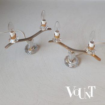 Franse jaren ’50 messing hanglamp met kunststofkapjes