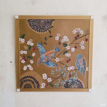 Gelakt kamerscherm met floraal motief, jaren ’80