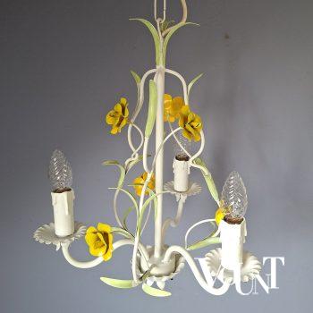 Dit handbeschilderde kamerscherm dat bestaat uit vier panelen van verschillende hoogte is voorzien van een bloemenmotief. De bloemen zijn onder andere vormgegeven met bladgoud. Na het aanbrengen van de bloemen is het kamerscherm voorzien van een hoogglanzende laklaag. Bijzonder kwaliteitsscherm, wat ook te zien is aan de toegepaste scharnieren. Hier en daar zitten wat lichte gebruikssporen op het scherm. De achterzijde is zwart.