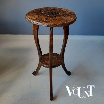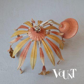 Dit handbeschilderde kamerscherm dat bestaat uit vier panelen van verschillende hoogte is voorzien van een bloemenmotief. De bloemen zijn onder andere vormgegeven met bladgoud. Na het aanbrengen van de bloemen is het kamerscherm voorzien van een hoogglanzende laklaag. Bijzonder kwaliteitsscherm, wat ook te zien is aan de toegepaste scharnieren. Hier en daar zitten wat lichte gebruikssporen op het scherm. De achterzijde is zwart.
