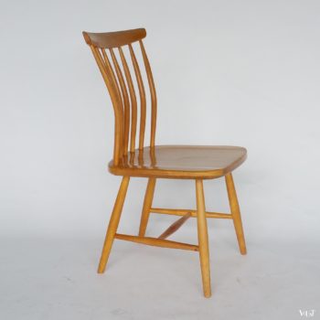 Deze (met de hand) in hoogte verstelbare stoel staat afgebeeld in de Gispen-catalogus met metalen kantoormeubilair van 1965 als bureaustoel 1541. Dit exemplaar is in goede staat en opnieuw bekleed met een grove gestreepte katoenen stof (nieuw schuimrubber).