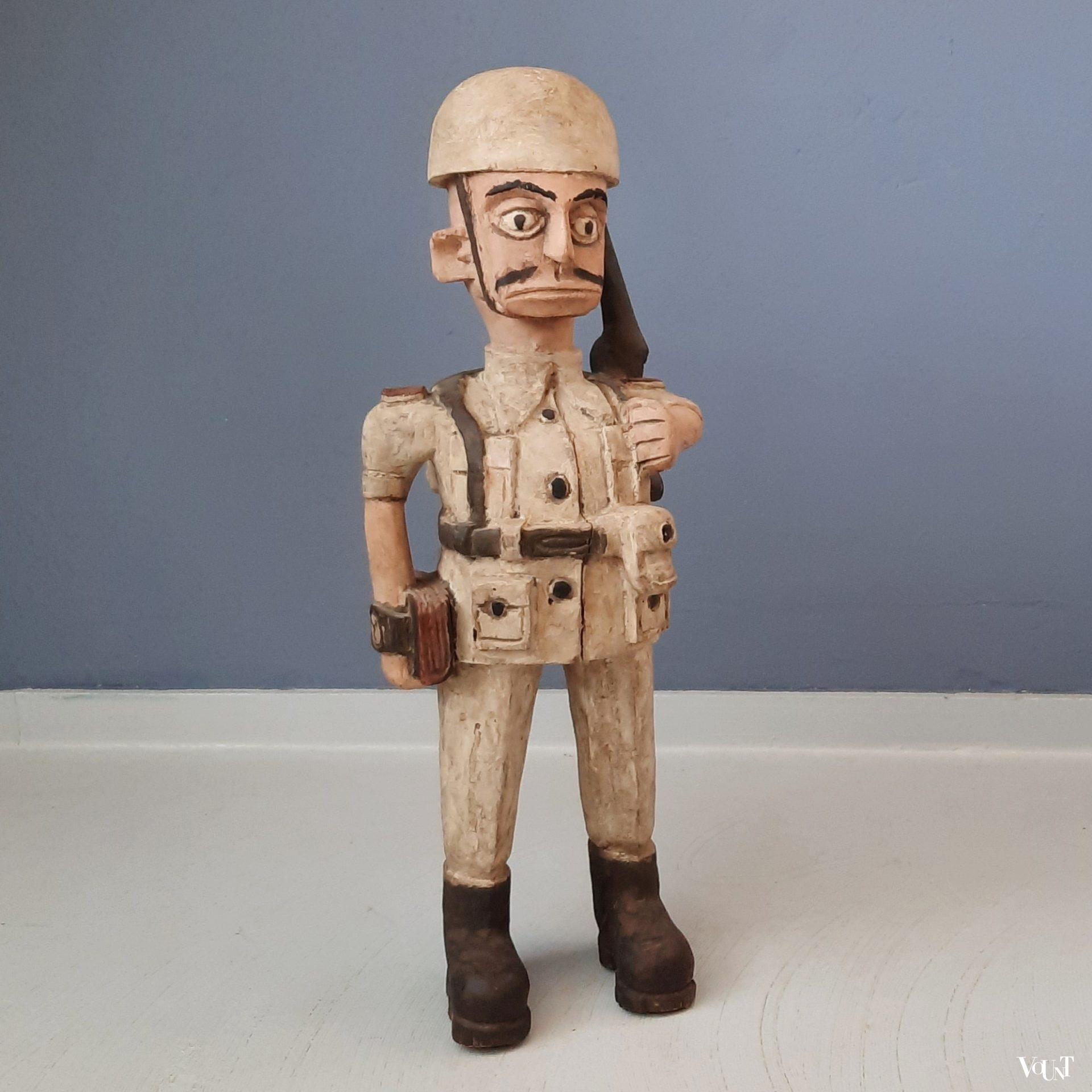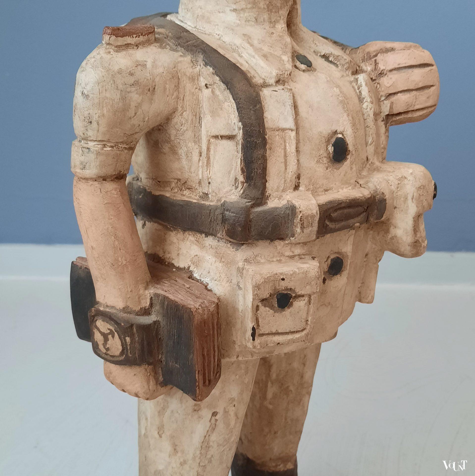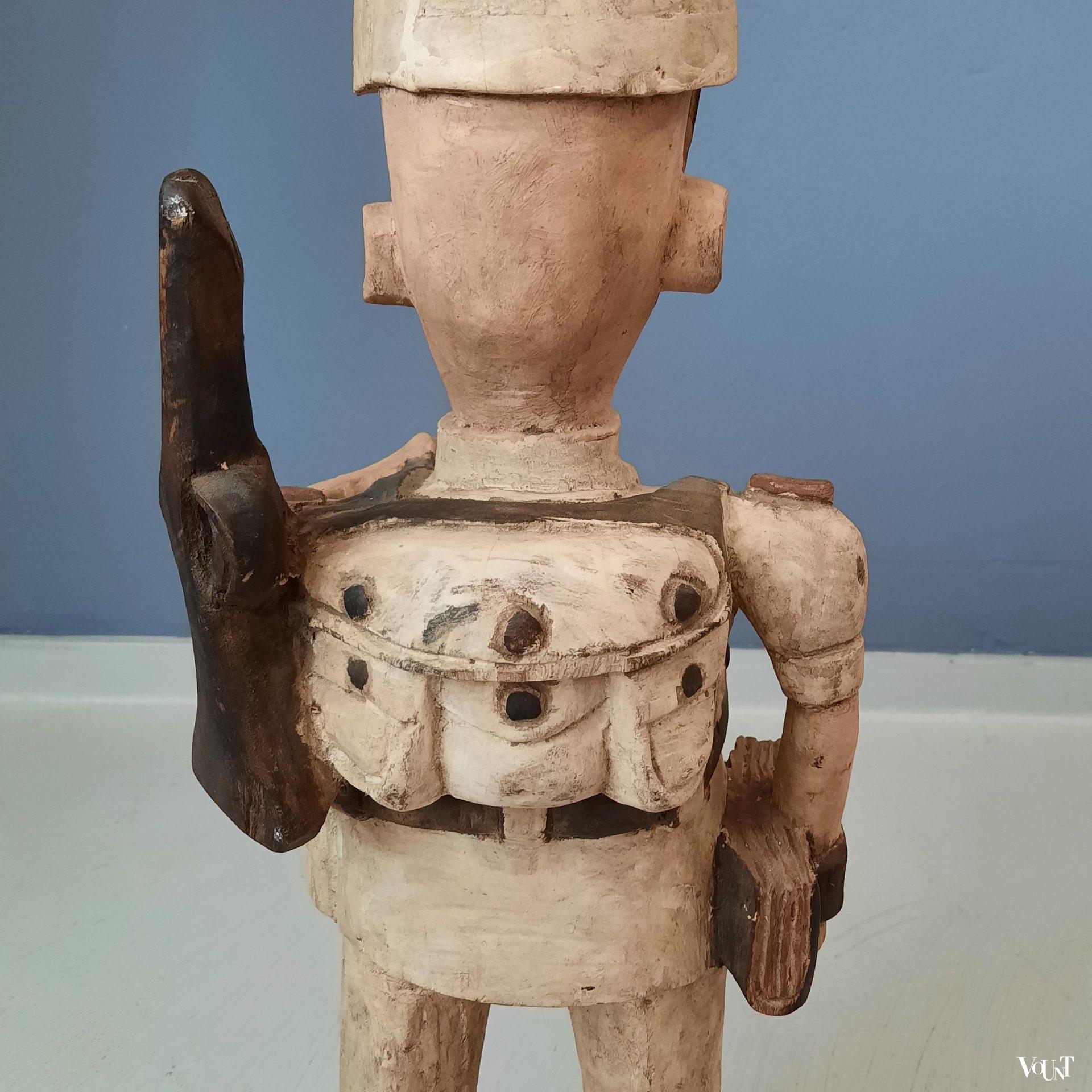 Dit soort houten beelden, zogenoemde Colon beelden, is in de 19e eeuw voortgekomen uit de koloniale overheersing van Afrika. Afgebeeld worden blanke kolonialen of zich aan de stijl van de kolonisten (qua uiterlijk, kleding en objecten) aangepaste Afrikanen. Colon Art zou zijn oorsprong hebben gehad in westelijk Afrika. Het beeld stelt een Franse soldaat voor.