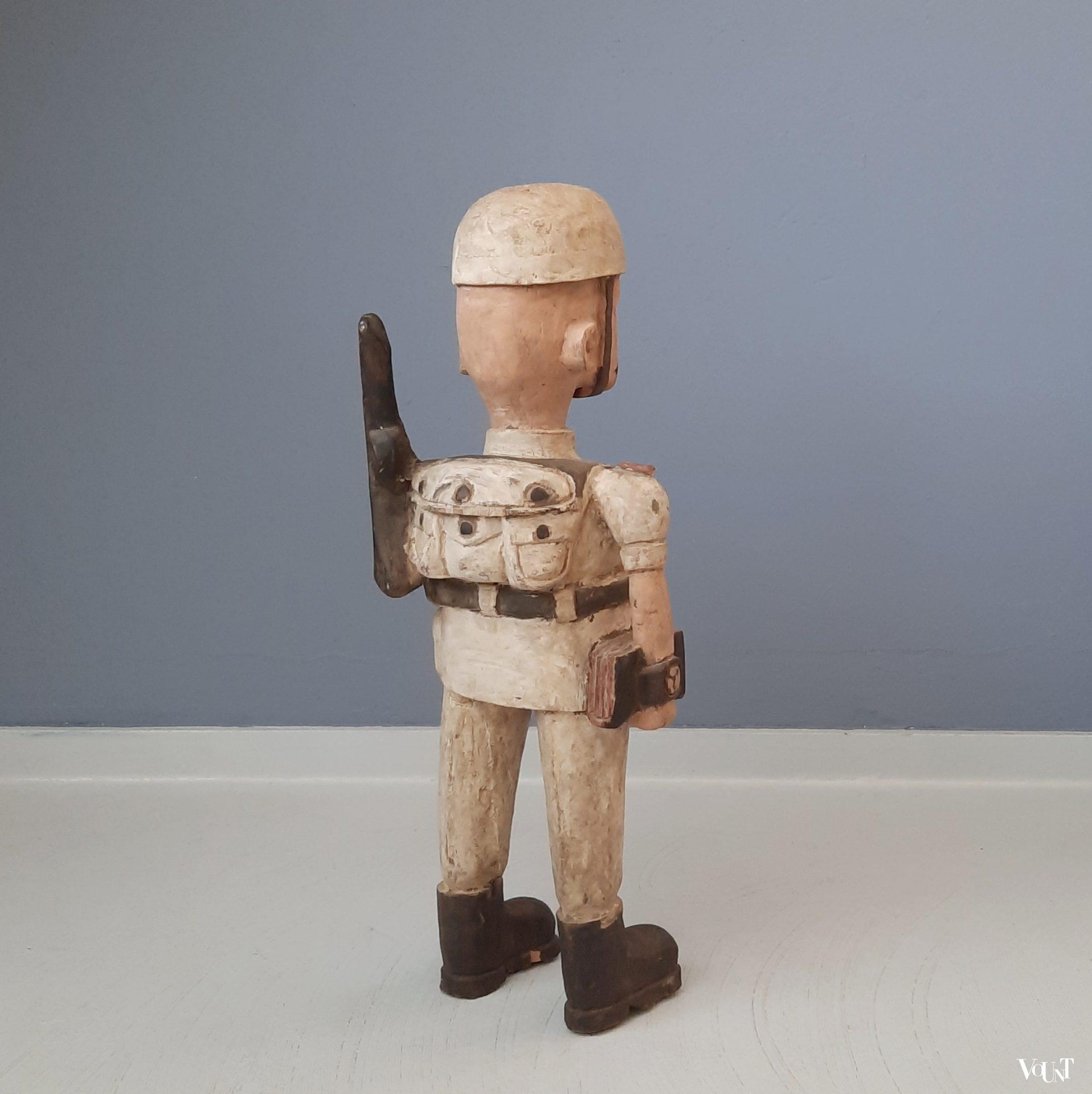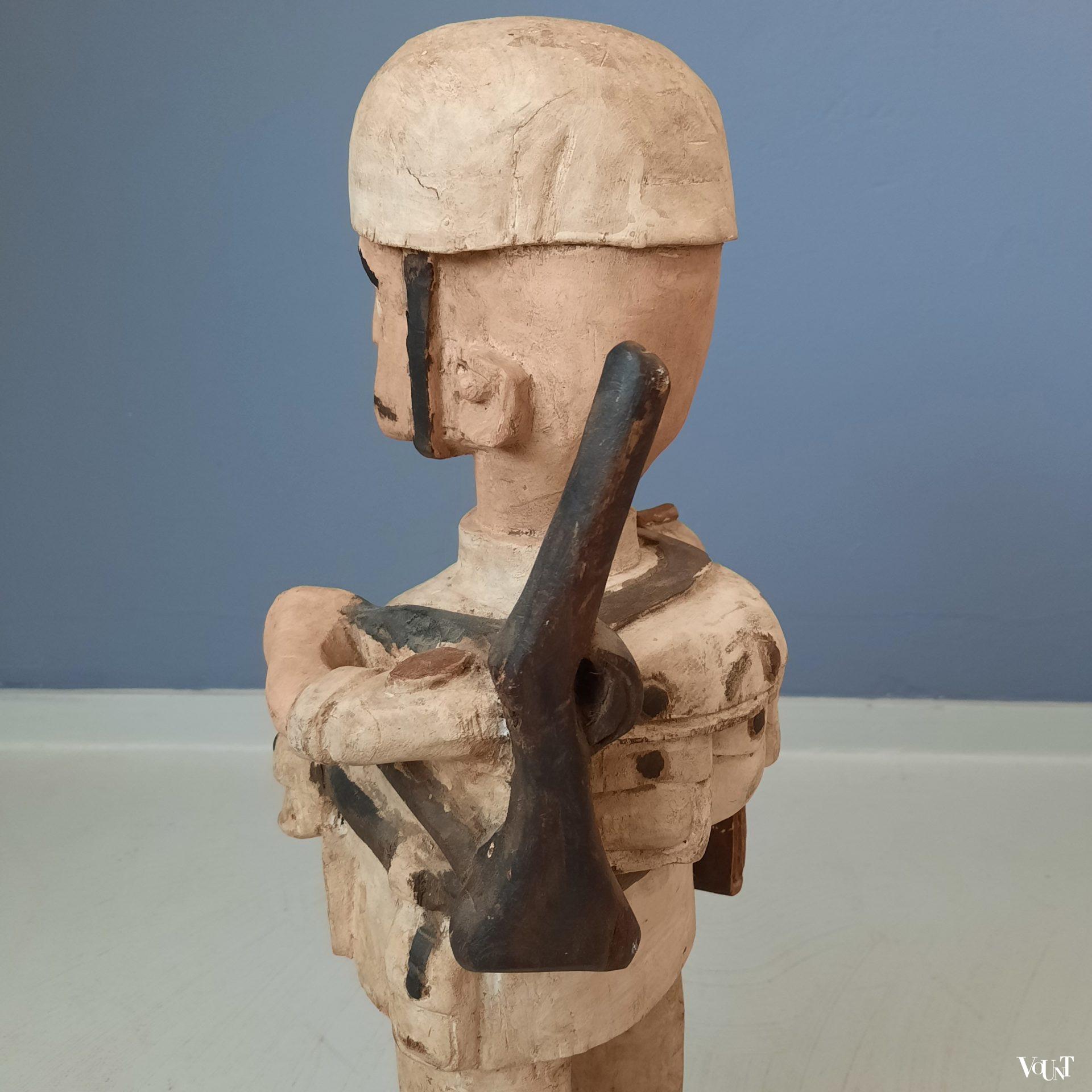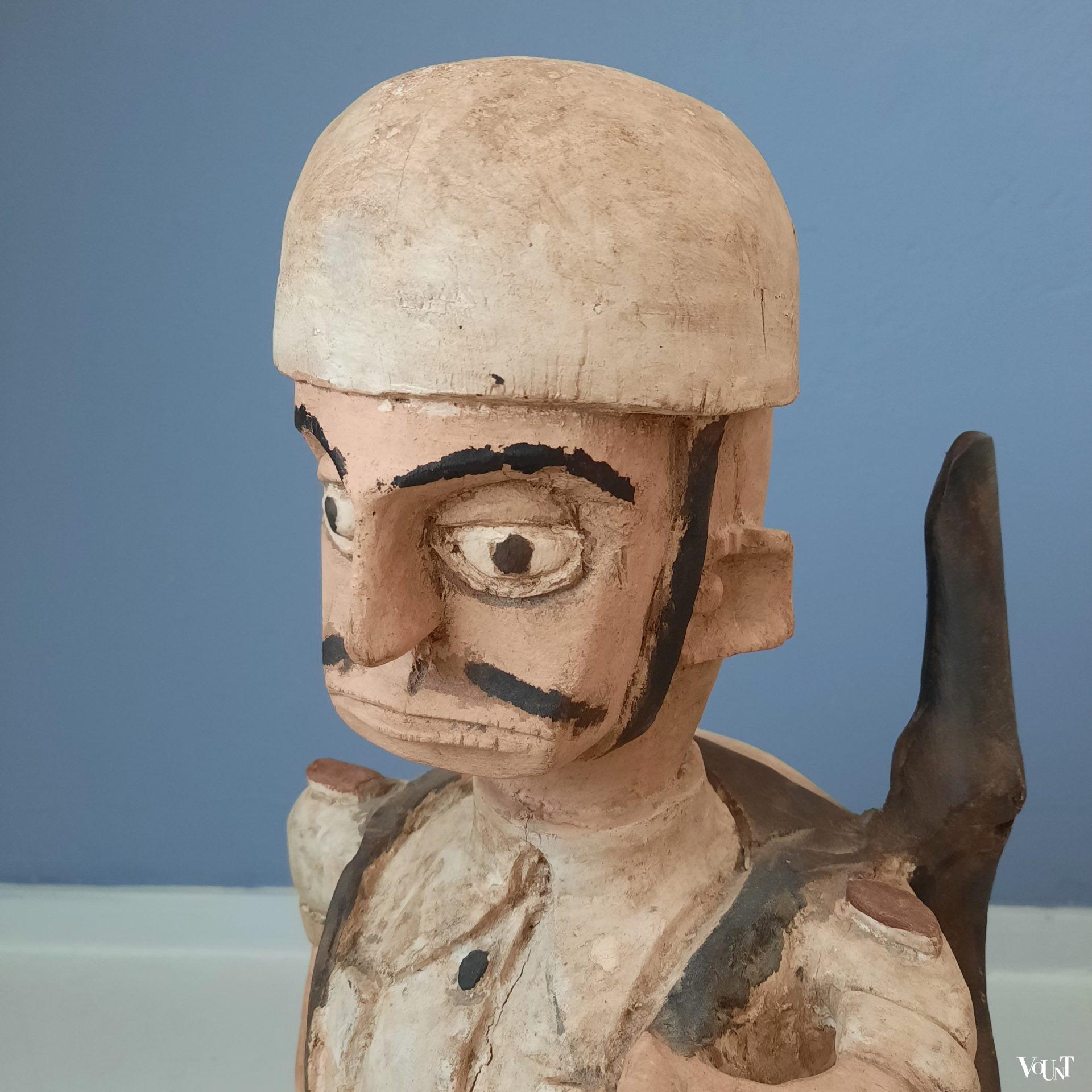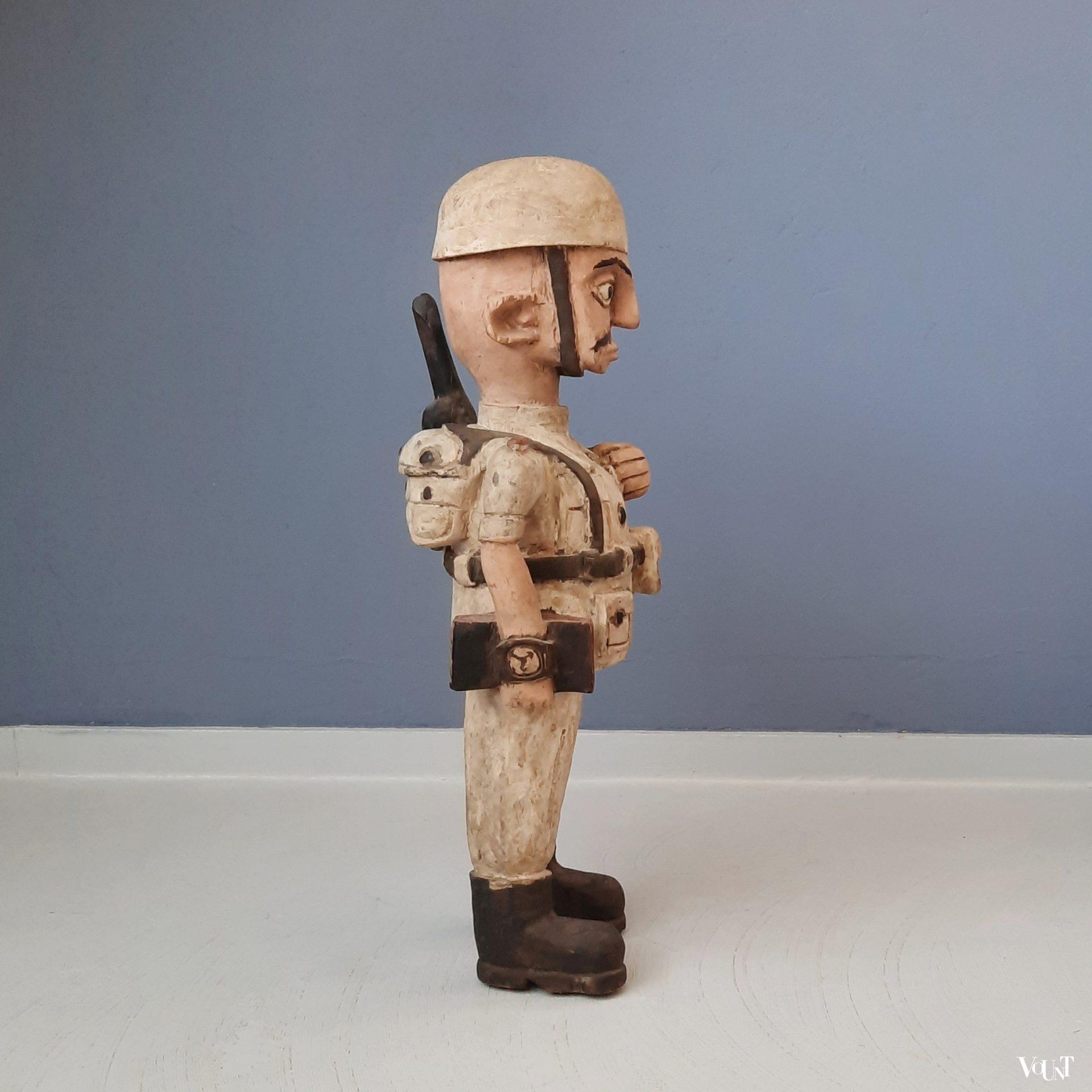 Dit soort houten beelden, zogenoemde Colon beelden, is in de 19e eeuw voortgekomen uit de koloniale overheersing van Afrika. Afgebeeld worden blanke kolonialen of zich aan de stijl van de kolonisten (qua uiterlijk, kleding en objecten) aangepaste Afrikanen. Colon Art zou zijn oorsprong hebben gehad in westelijk Afrika. Het beeld stelt een Franse soldaat voor.