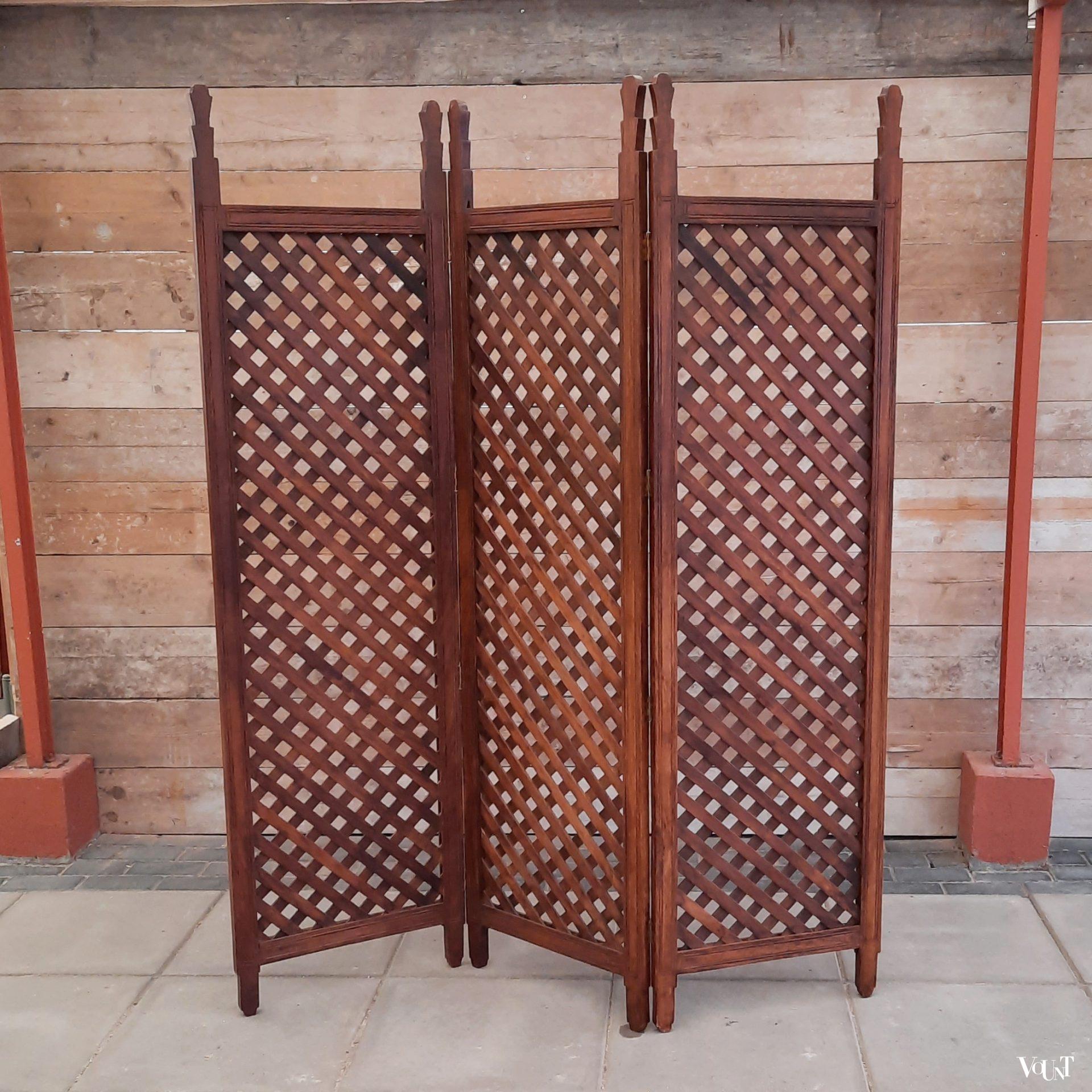 Mooi als room divider in je kamer, als hoofdbord voor je bed of achtergrond voor je planten, dit houten drieslags kamerscherm. In goede conditie.