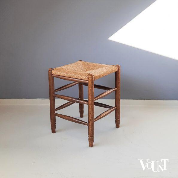 Houten kruk met biezen zitting, jaren ’60