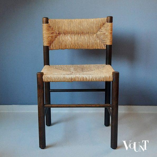 Mooie vintage stoel uit de jaren ’70. De stoel bestaat uit een donkerbruin houten frame en een biezen zitting en rugleuning. De biezen zitting is in goede gebruikte conditie, maar heeft wel aan de achterzijde van de rugleuning wat gebruikssporen in de vorm van een (vocht)vlek. Zie de foto’s.