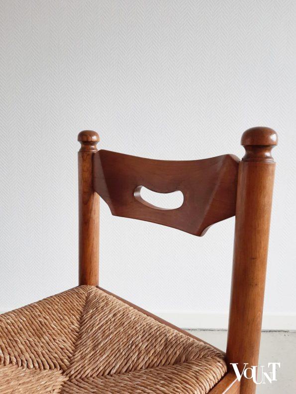 Deze set van 4 stoelen met biezen zittingen gaat nog wel weer 50 jaar mee. Eikenhout. In goede en stevige conditie.