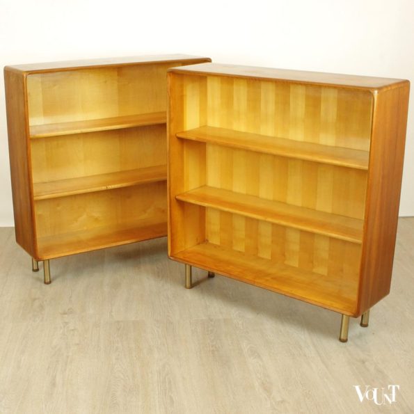 Van deze bijzondere jaren ’50/’60 boekenkasten hebben wij er twee. Ze werden door A.A. Patijn ontworpen voor Zijlstra’s Meubelfabriek in Joure. De kasten vallen op door de mooie afgeronde hoeken, de lichte kleur van het hout en de chromen pootjes met houten voetjes (klosjes). Ze zijn in goede, gebruikte staat.
