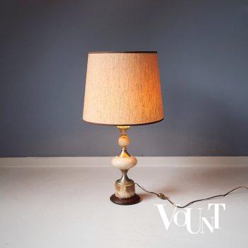 Deze console en spiegel dateren uit de jaren ’50/’60 en zijn gemaakt van composiet, hout en gips. Op het console ligt een dunne witte marmeren plaat. In goede conditie.