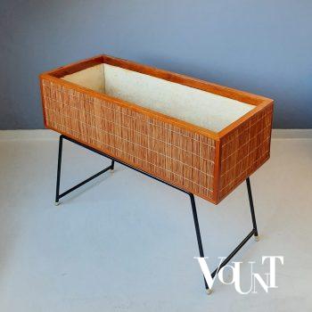 Deze klok zie je toch zo op een jaren ’50 schoorsteenmantel staan? Bijzonder exemplaar van gehamerd roestvrij staal met een messing verbinding tussen voet en klok. De klok is elektrisch en loopt goed.