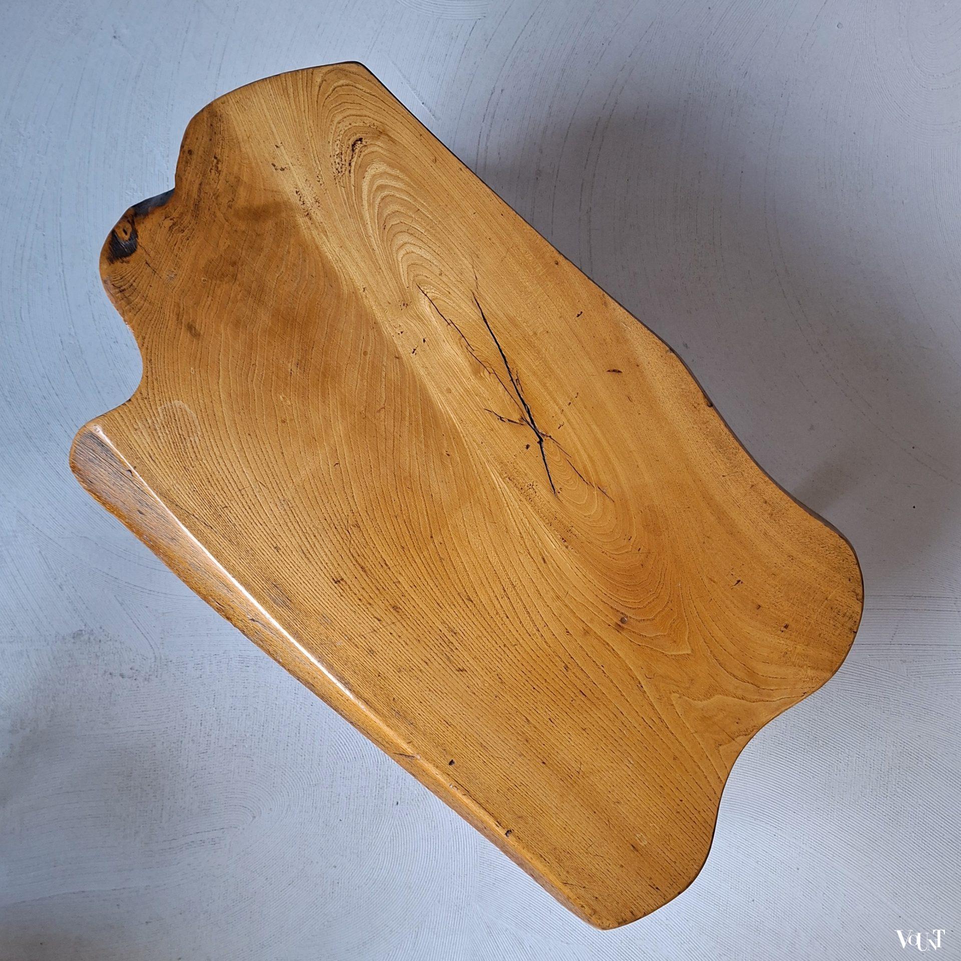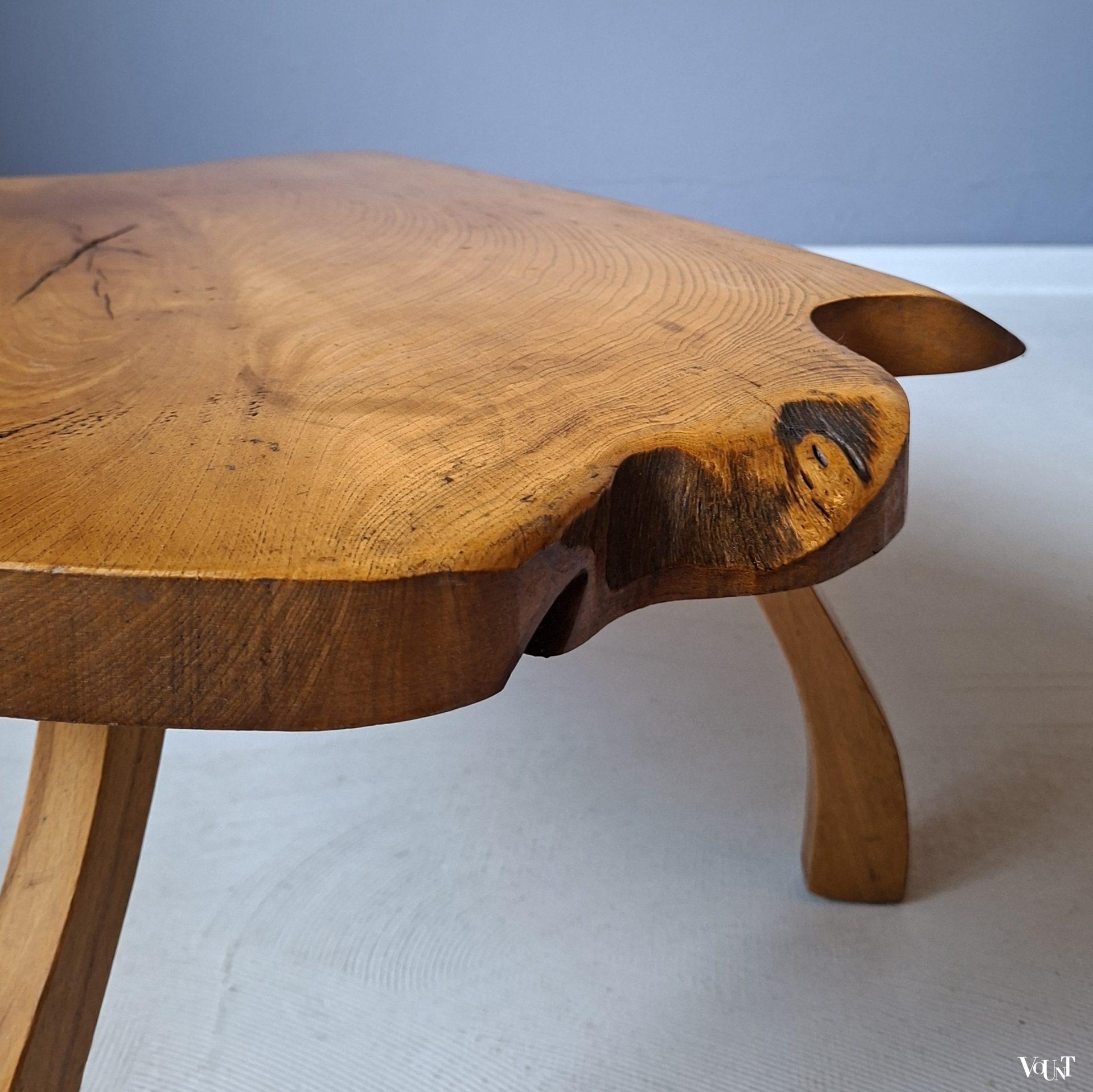 Deze bijzettafel of kleine salontafel heeft een warme, blonde kleur. Brutalist-stijl. In goede conditie.