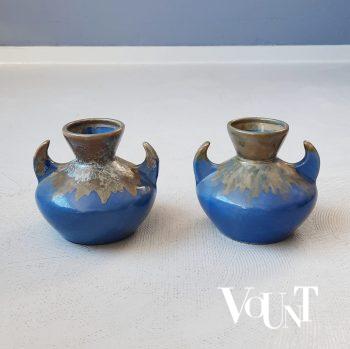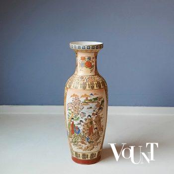 Bijzondere, veelkleurige en rijkversierde art nouveau-vaas. Herkomst onbekend. De vaas is niet gemerkt. De tijd heeft wel sporen achtergelaten (bijv. bloemdecoratie plaatselijk gechipt), maar de vaas is nog steeds in mooie staat. (Mogelijk Minton Majolica, dus van vroegere datum).
