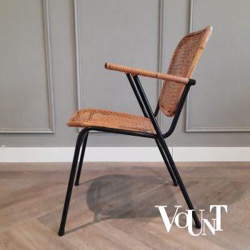 Dit kamerscherm is rondom opengewerkt en deels bekleed met gevlochten rotan. In goede conditie (geen gaten in het rotan o.i.d.). Normale sporen van ouderdom en gebruik.