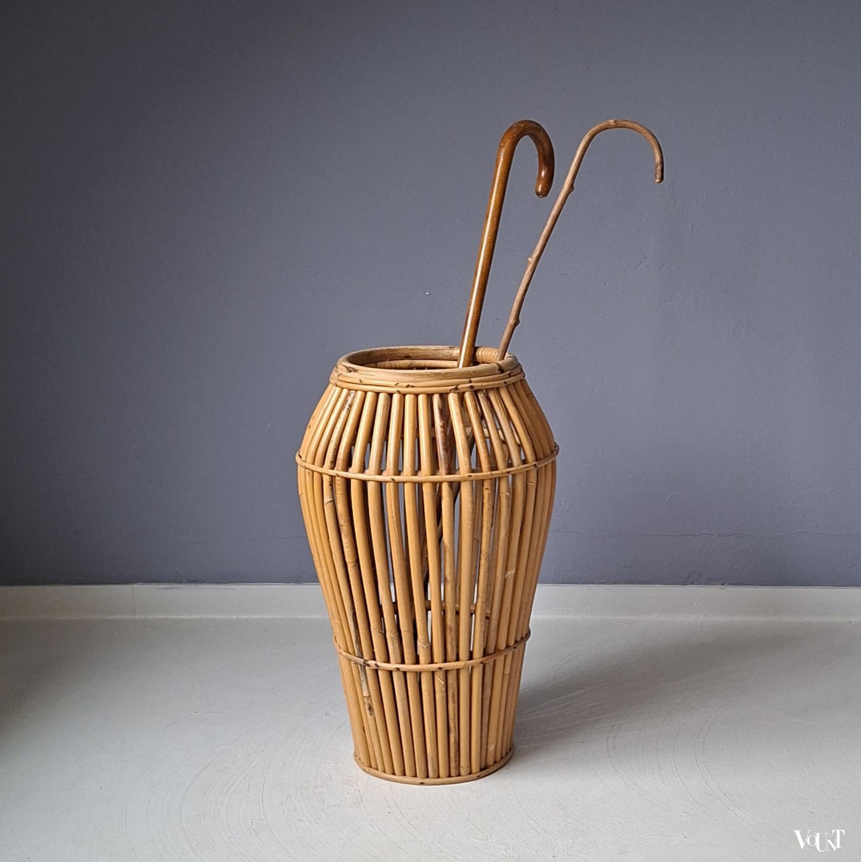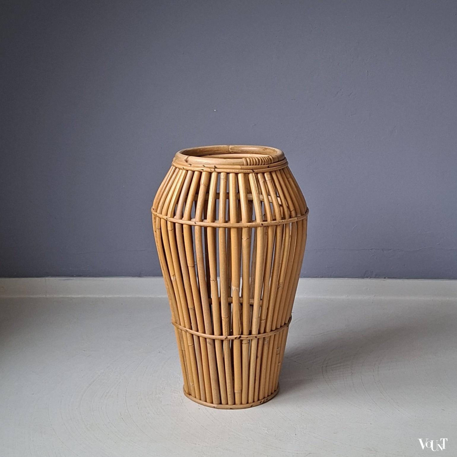 Italiaanse vintage paraplubak, gemaakt van rotan. Jaren ’60/’70. In goede conditie.