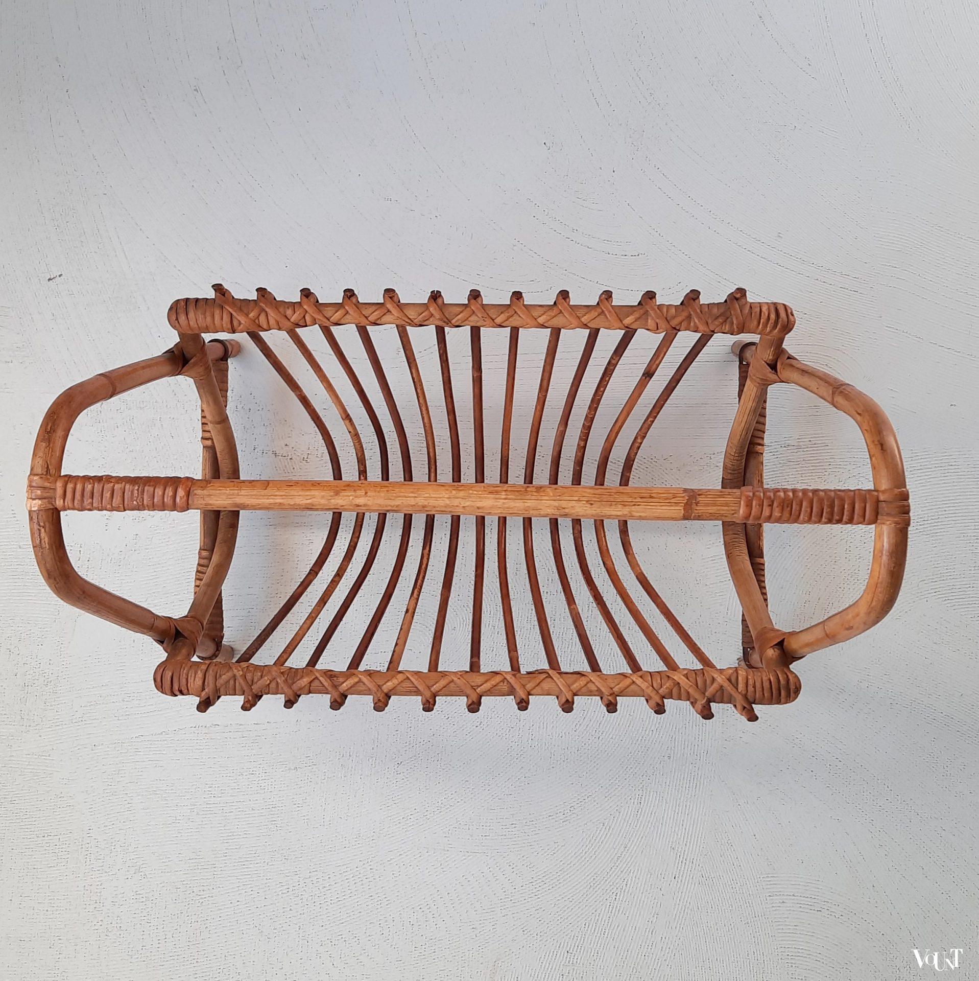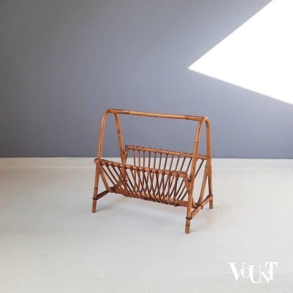 Dit originele jaren ’60 tijdschriftenrek / lectuurrek heeft met de jaren een mooi warmbruin patina gekregen. In goede, stevige conditie.